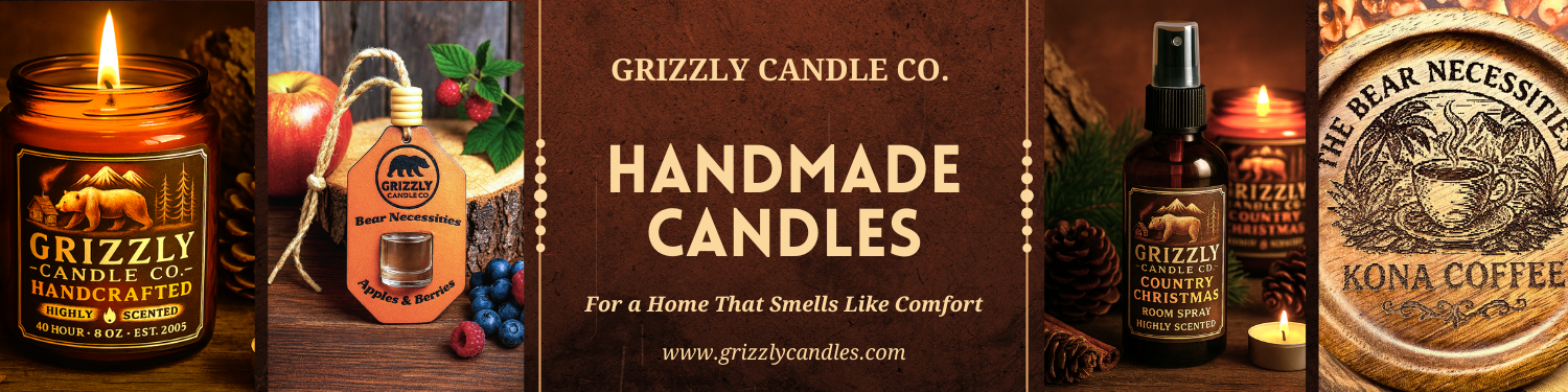 At Grizzly Candle Co., we keep it simple — one perfect size, countless unforgettable fragrances. Each of our hand-poured 8oz candles is crafted in small batches to deliver a clean burn, rich fragrance, and cozy glow for any space. From warm and sweet to fresh and outdoorsy, our variety of fragrances lets you find the scent that feels like home. Light one, relax, and let the adventure begin.